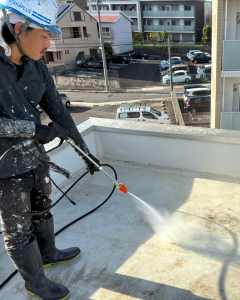 高圧洗浄で長年の汚れやコケをしっかり除去しています。