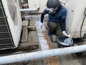 専用の補修材でしっかりと補修し、防水性と強度を回復させました!