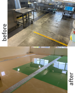 愛知県内/小学校 給食室改修工事/厚膜型エポキシ系塗床(ユータックE-30N)