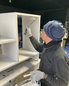 事務所の倉庫内で、家具?を塗装しているところに遭遇。