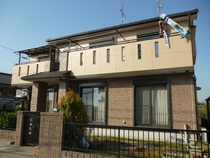 知多市 N様邸 外壁塗装・コーキング打替工事 << 前の事例へ|次の事例へ >> 一覧に戻る ポイント タイル調外壁は、ロックペイントのクリスタルロック UVガードクリヤーその他外壁の下塗りは日本ペイントのアンダーフィラー弾性塗料使用上塗りは、スーパーオーデフレッシュSIを使用しました。 ギャラリー ※クリックすると画像が拡大されます。 << 前の事例へ|次の事例へ >> 一覧に戻る