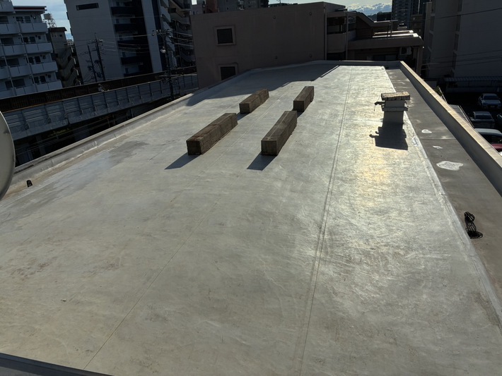 名東区 T社様 屋上防水改修工事 << 前の事例へ|次の事例へ >> 一覧に戻る ポイント 下地処理後、プライマーを塗布し、補強布を積層することで防水層の強度と耐久性を向上。ウレタン主材を2層塗布し、均一な膜厚を確保することで、ひび割れへの追従性と長期的な防水性能を実現しました。補強布密着工法ZHM-200M工法 エバーコートZERO-1HDSM-200LM工法 DSカラー ギャラリー ※クリックすると画像が拡大されます。 << 前の事例へ|次の事例へ >> 一覧に戻る